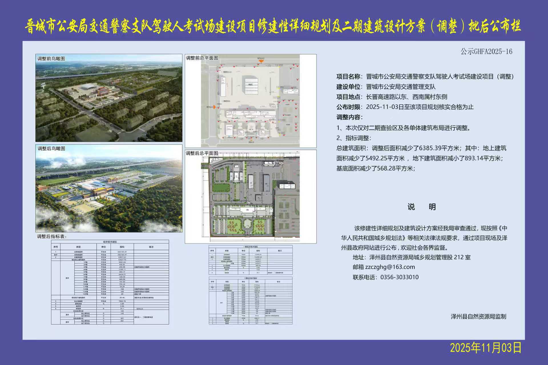 晋城市公安局交通警察支队驾驶人考试场建设项目修建性详细规划及二期建筑设计方案(调整)批后公布栏