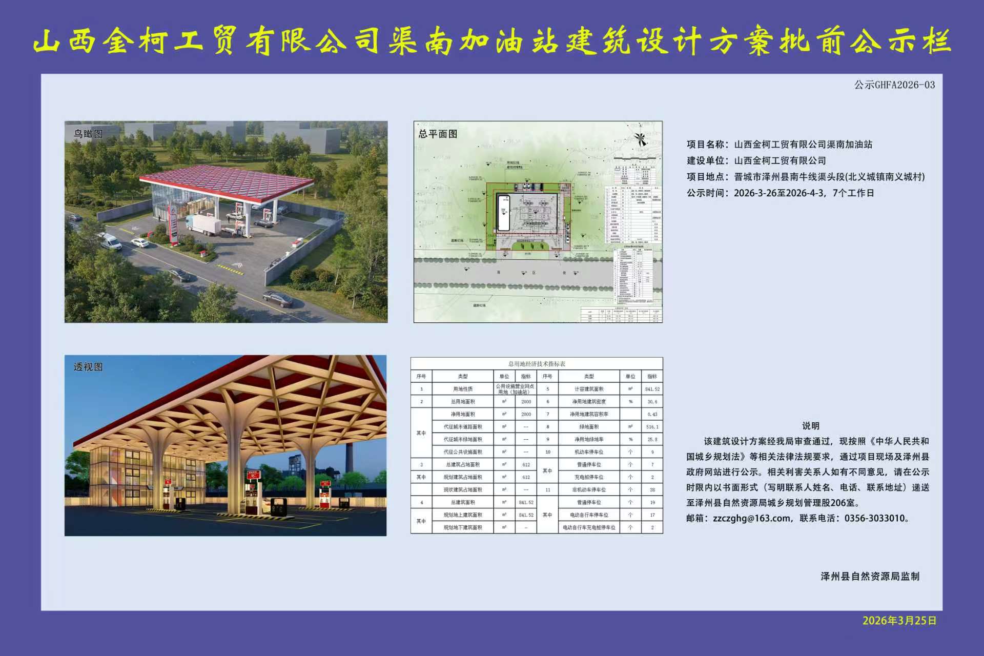 山西金柯工贸有限公司梁南加油站建筑设计方案批前公示栏