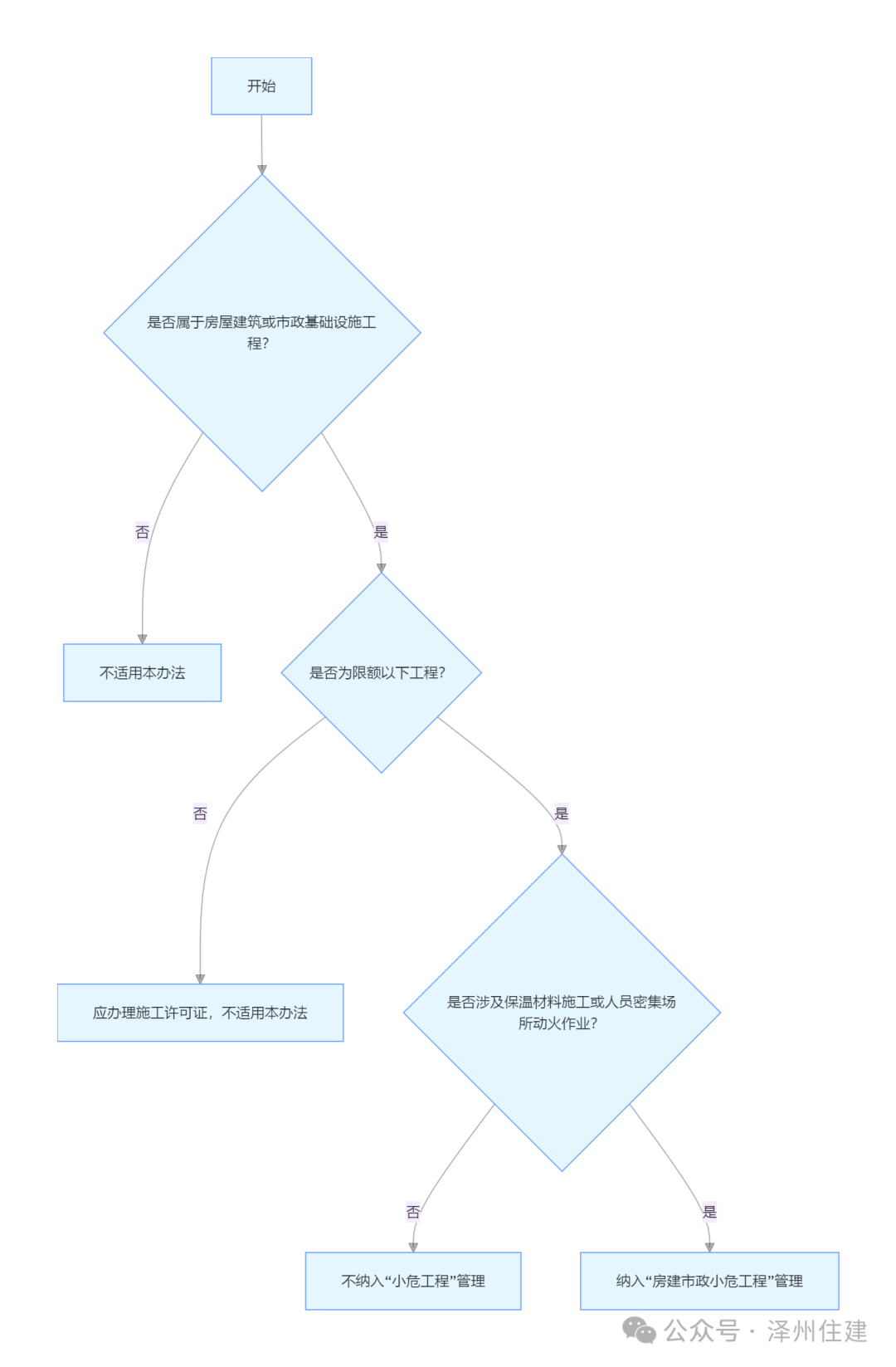 本办法所指房建市政限额以下小危工程,是无需办理施工许可、涉及公共区域且涉及保温材料施工或人员密集场所动火作业的小型工程,判定需同时满足限额标准和危险情形,具体范围如下: