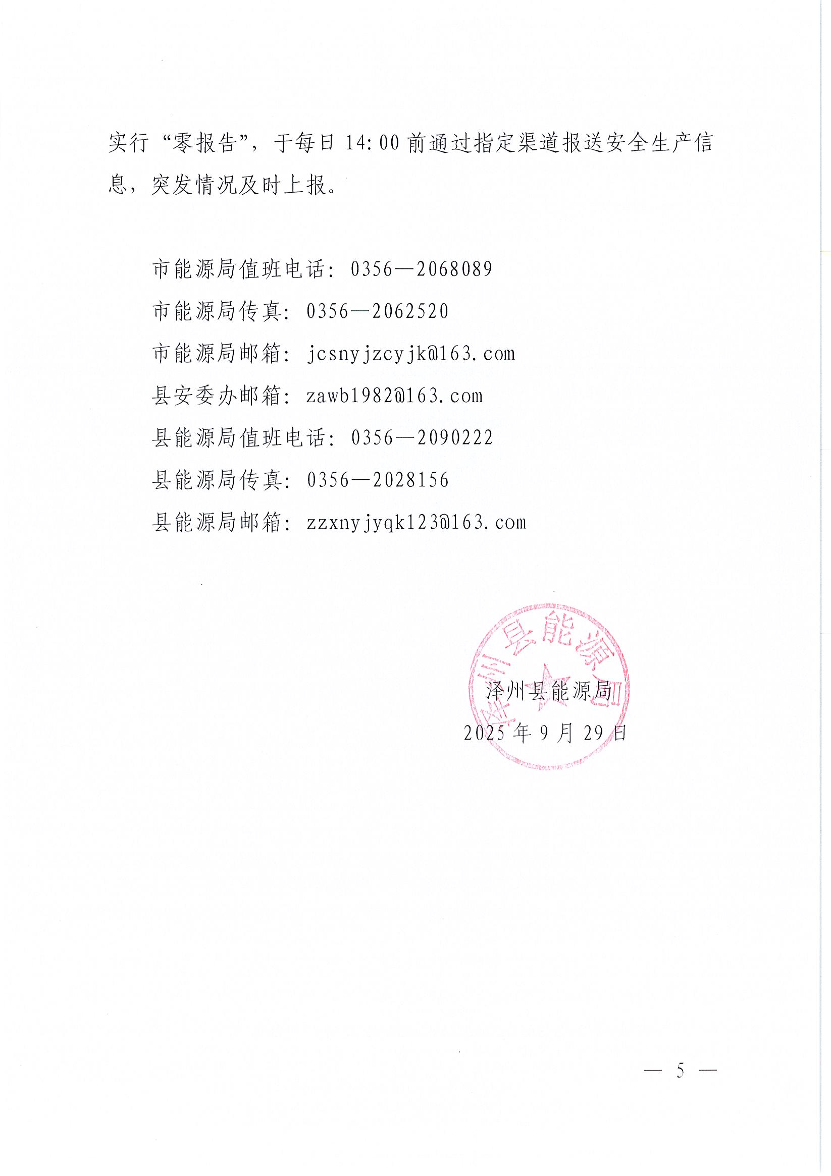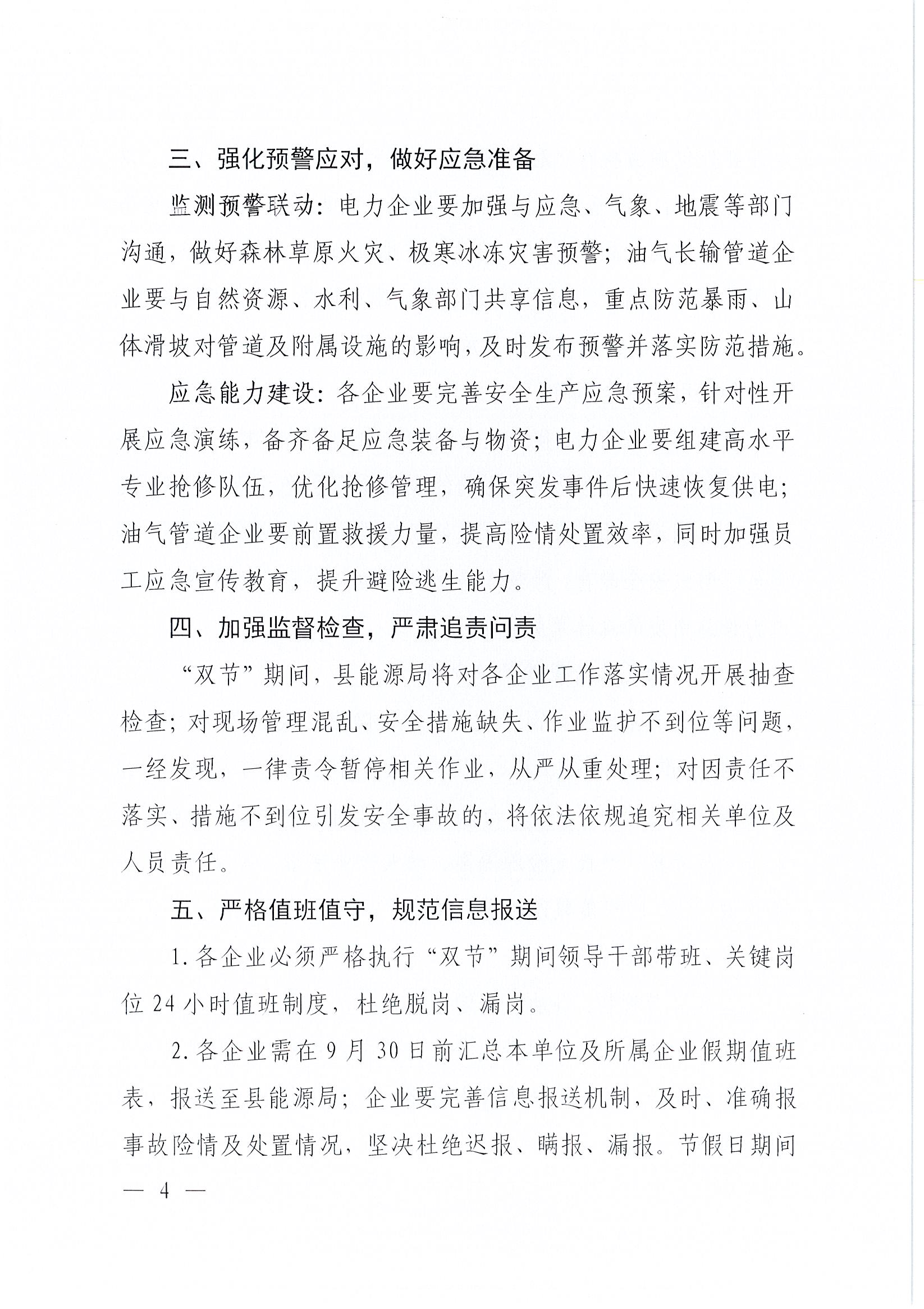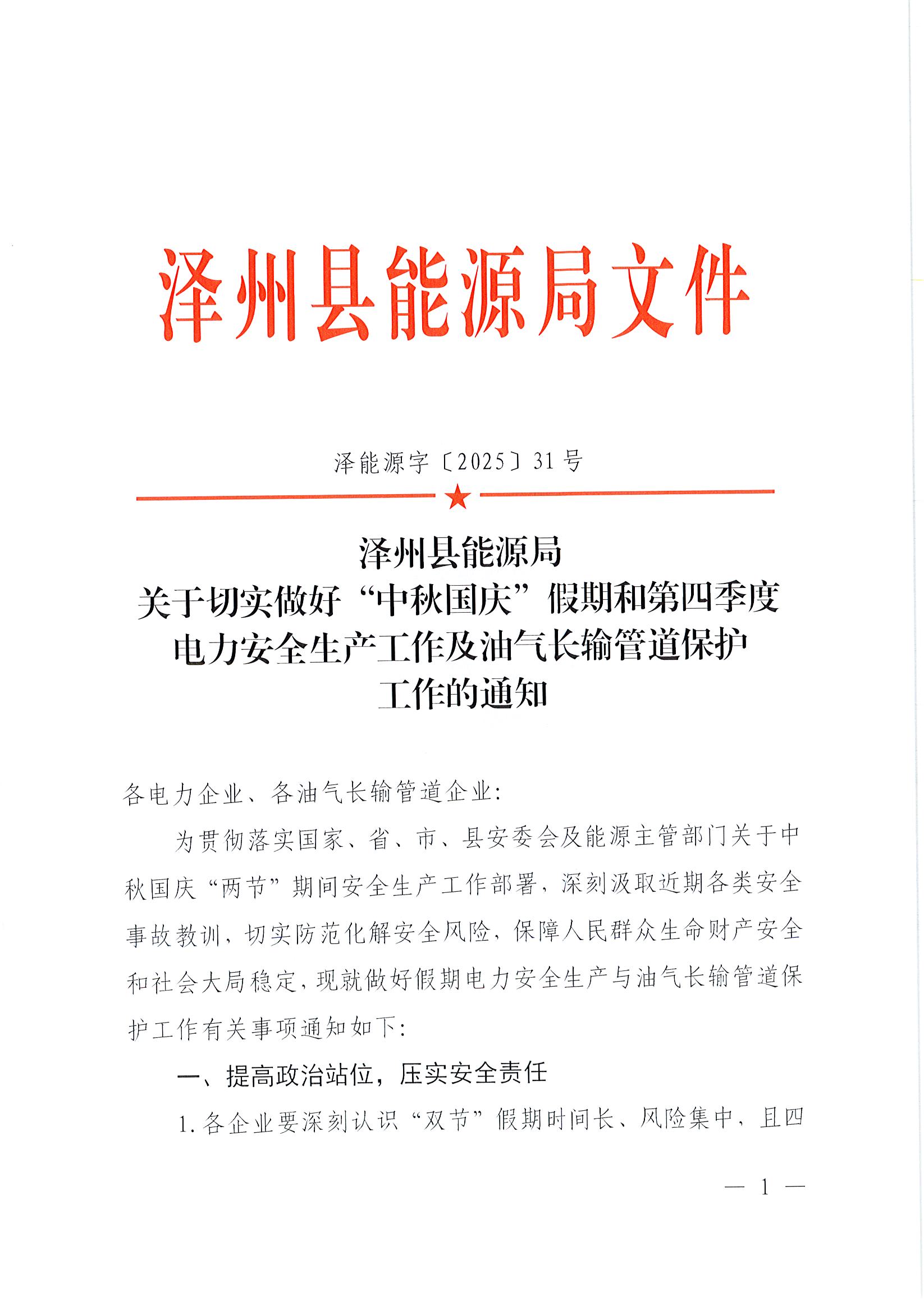 泽州县能源局关于切实做好“中秋国庆”假期和第四季度电力安全生产工作及油气长输管道保护工作的通知