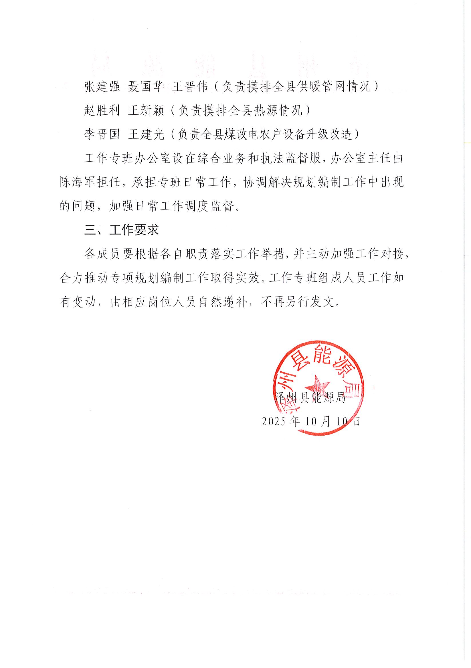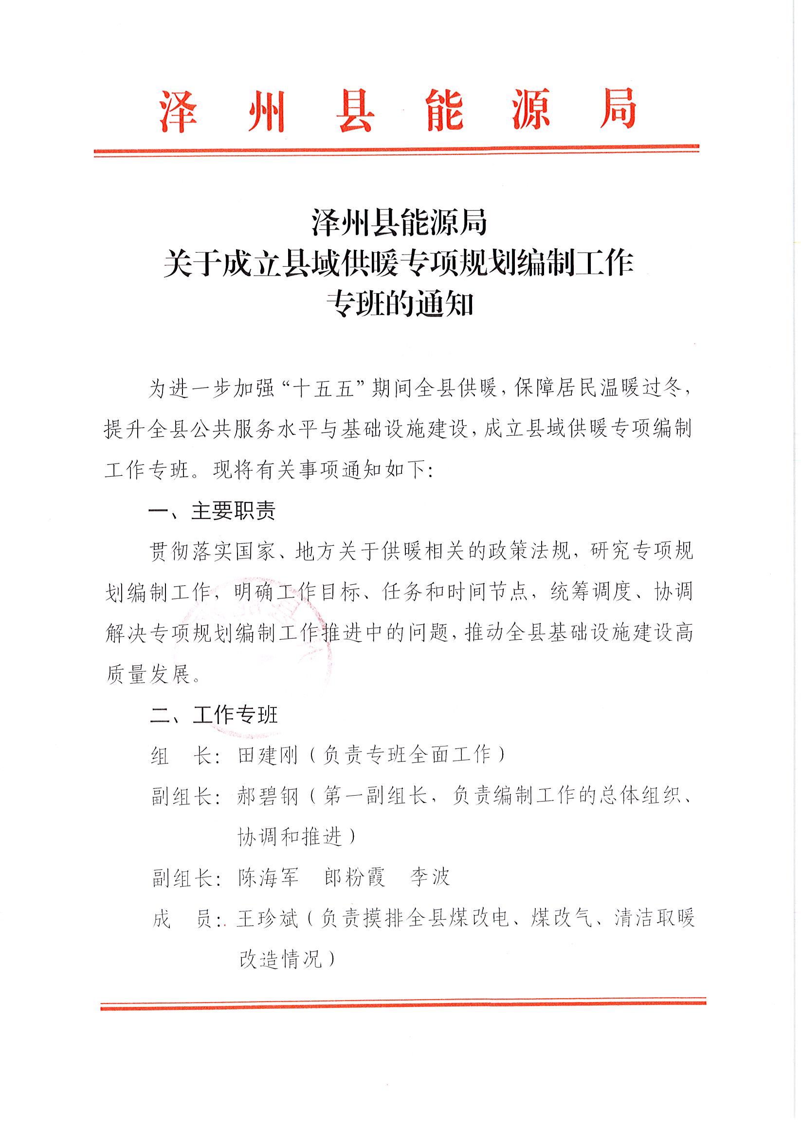 泽州县能源局关于成立县域供暖专项规划编制工作专班的通知