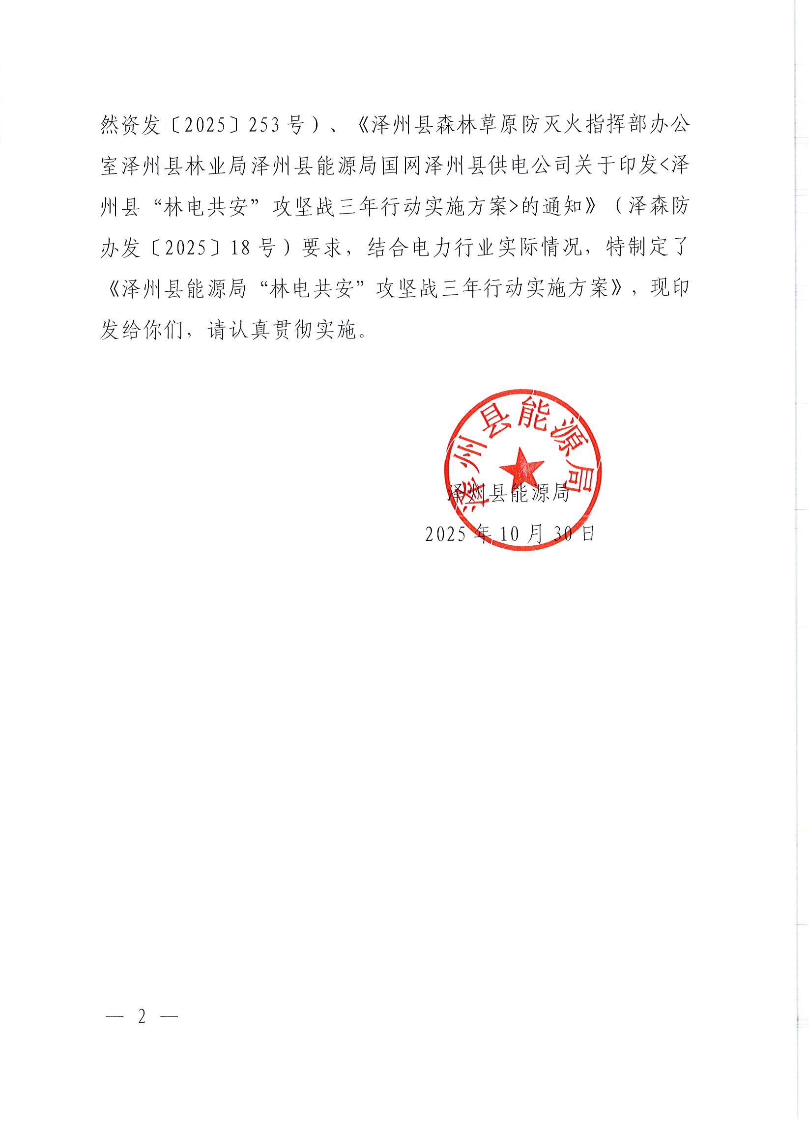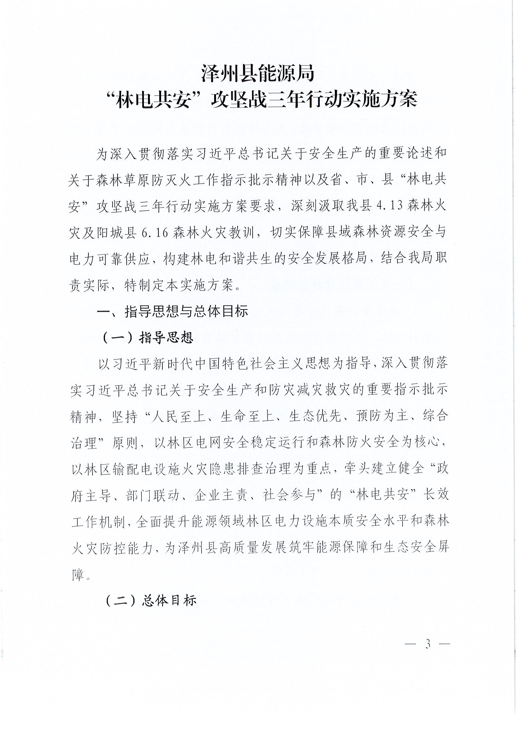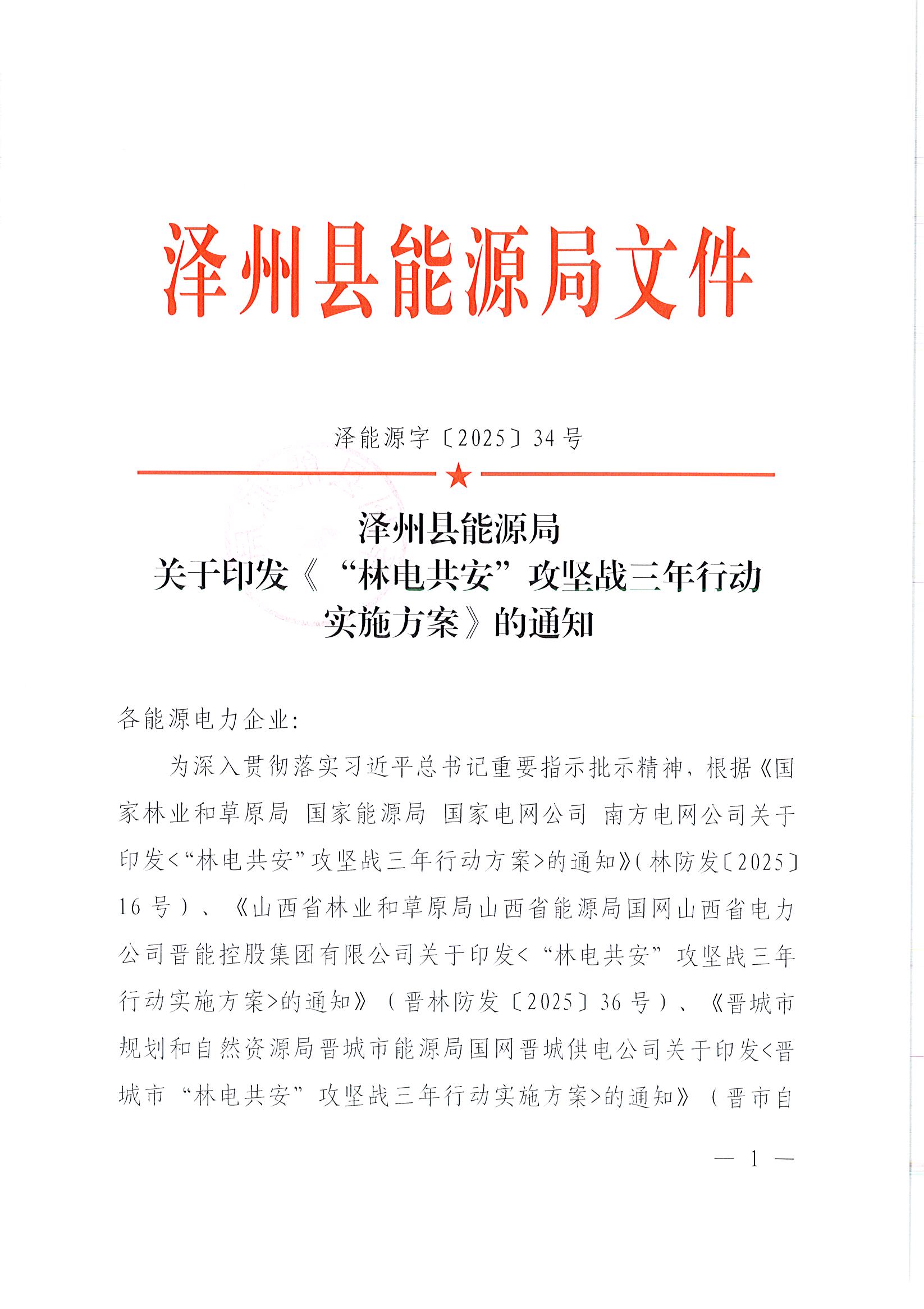 泽州县能源局关于印发《“林电共安”攻坚战三年行动实施方案》的通知
