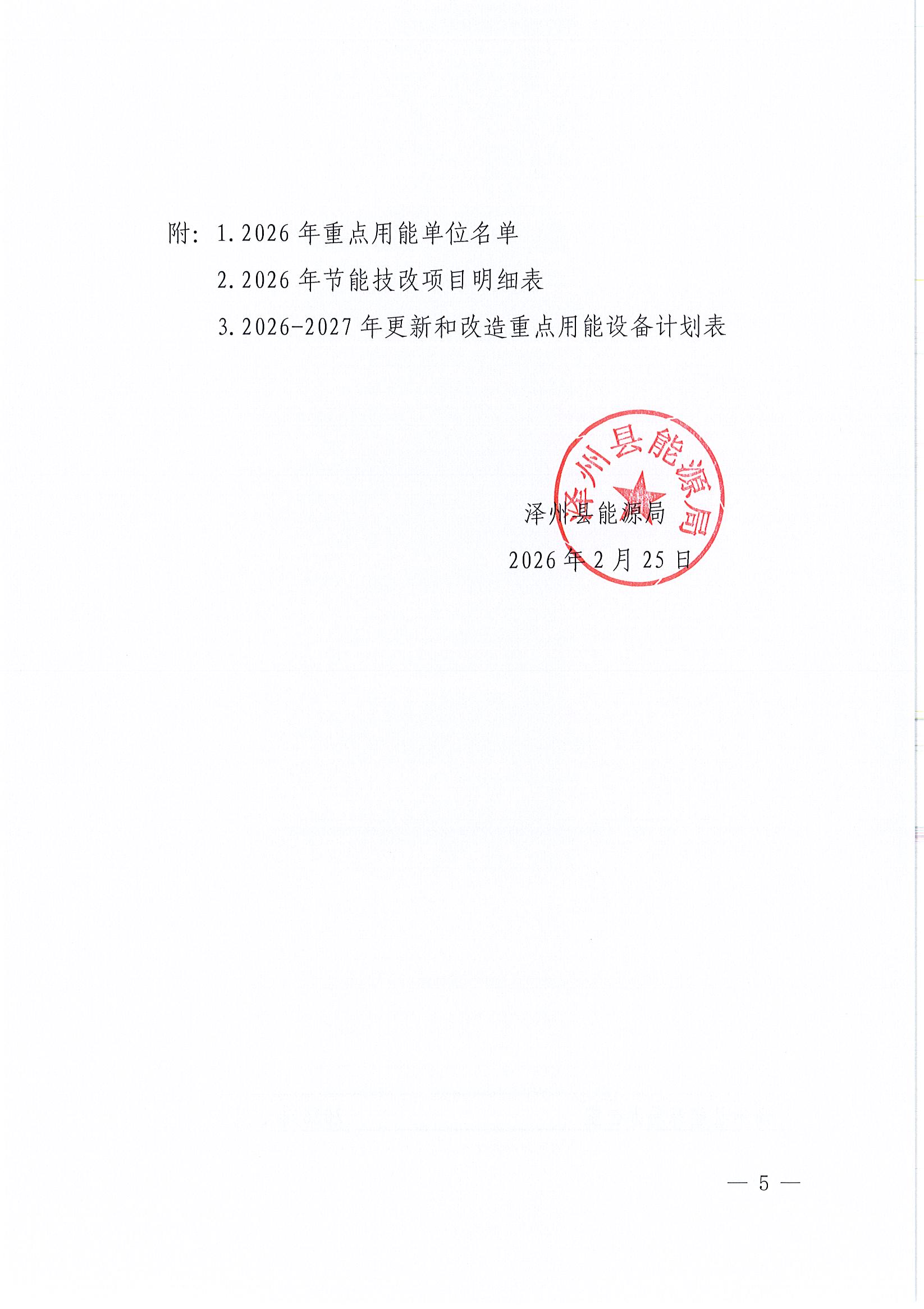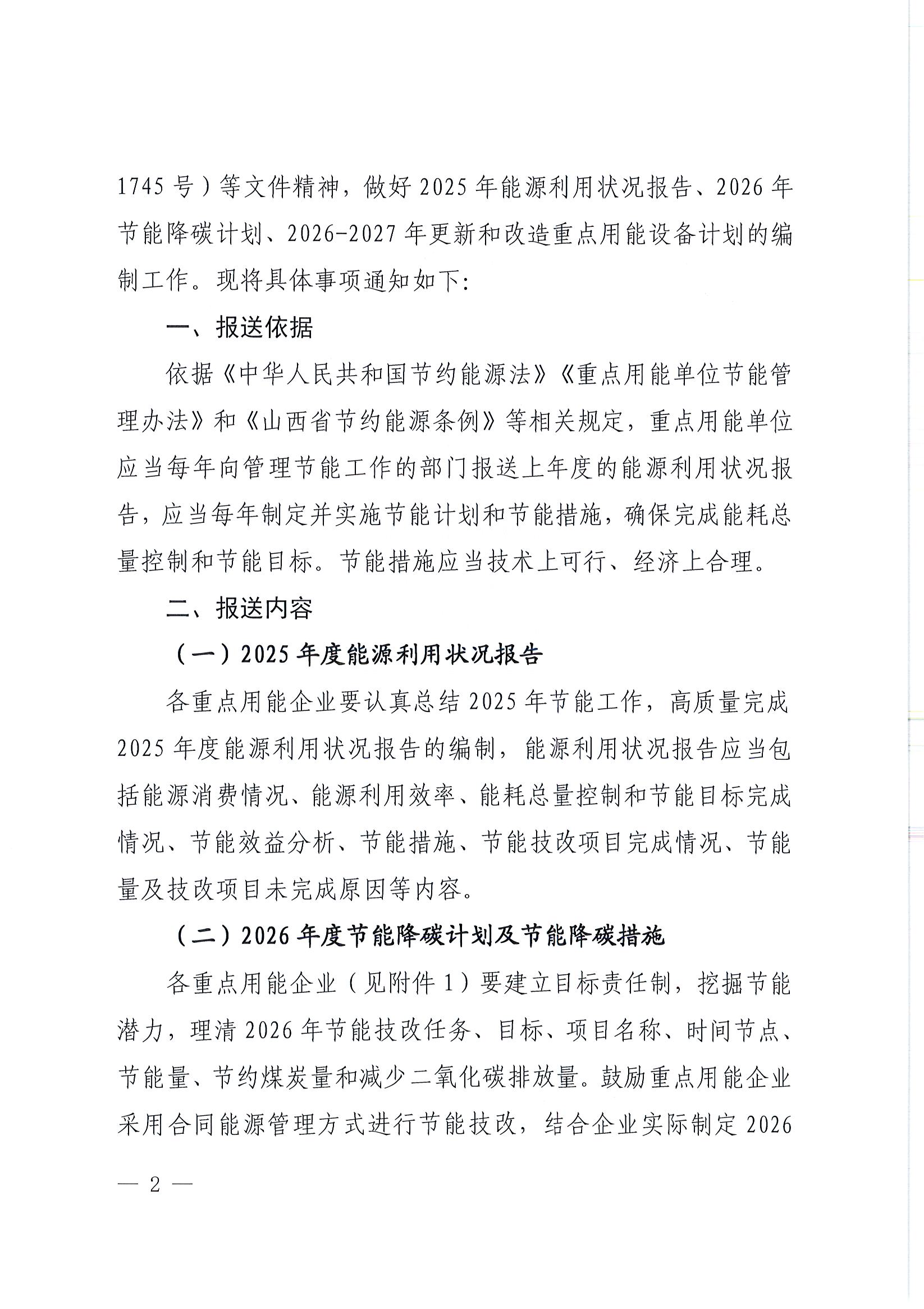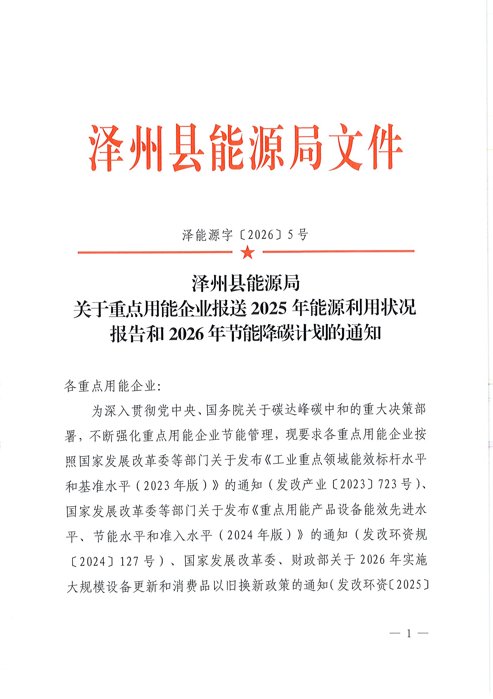 泽州县能源局关于重点用能企业报送2025年能源利用状况报告和2026年节能降碳计划的通知